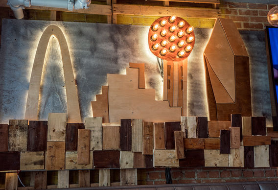 Hand-drawn illustrations of the Dallas skyline are transformed into a one of a kind wood-cut sculpture that illuminates the dining area of Deep Ellum's most popular brewary.